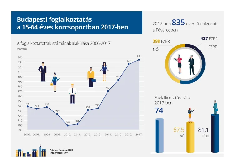 134 ezerrel többen dolgoztak Budapesten 2017-ben, mint hét évvel korábban